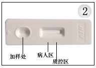 各部位說明: 加樣區(qū):將血滴滴在加樣區(qū)。 對(duì)照區(qū):對(duì)照線(質(zhì)控線)出現(xiàn)的位置。 檢測區(qū):病人條帶線(陽性線)出現(xiàn)的位置。 |