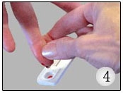用棉球消毒指尖后,擰下一次性采血針保護(hù)圓帽,刺破皮膚表面,輕輕擠壓出血。 采血之前,可以充分揉搓手指促進(jìn)血液循環(huán);一般選擇左手的無名指;注意一支采血針只能一人使用,以免造成交叉感染。(圖3)
