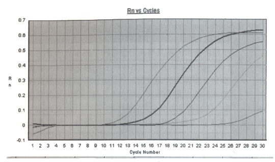 傳統(tǒng)PCR對基因的檢測只能定性,不能定量主要是由擴(kuò)增產(chǎn)物積累的動力學(xué)所決定的:①PCR產(chǎn)物在擴(kuò)增過程中呈指數(shù)積累,當(dāng)產(chǎn)物增加到一定程度,產(chǎn)物就停止了指數(shù)積累。不同起始模板,其指數(shù)增長期所用的循環(huán)是不同的,因此,不同數(shù)量基因的樣品在同一循環(huán)次數(shù)中積累的產(chǎn)物不能作為樣品基因定量的依據(jù);②PCR產(chǎn)物積累到一定程度就不能再增加,再進(jìn)入平臺期。為了擴(kuò)大PCR檢出的靈敏度通常要增加循環(huán)次數(shù),循環(huán)次數(shù)增加使得樣品目的基因含量高的反應(yīng)管已進(jìn)入平臺期,終產(chǎn)物量并不代表樣品目的基因含量;③PCR反應(yīng)的管間擴(kuò)增效率差異總是存在的,既然PCR產(chǎn)物呈指數(shù)增長,由擴(kuò)增效率差異引起的產(chǎn)物擴(kuò)增差異也呈指數(shù)積累,增加循環(huán)次數(shù)勢必增加終產(chǎn)物的差異,而減少循環(huán)次數(shù)又降低了檢測的靈敏度。FQ-PCR采用實時檢測,使所有含有不同數(shù)量的目的基因均在同一條件(達(dá)到熒光閾值)下進(jìn)行分析,因而更具有可比性。而且,這一條件處于擴(kuò)增產(chǎn)物指數(shù)積累初期,合成產(chǎn)物所需的dNTP、酶、離子均處于飽和的最佳狀態(tài),所以FQ-PCR循環(huán)參數(shù)與起始模板間有良好的線性關(guān)系(相關(guān)系數(shù)>0.95),實現(xiàn)了極為精確的基因定量檢測。