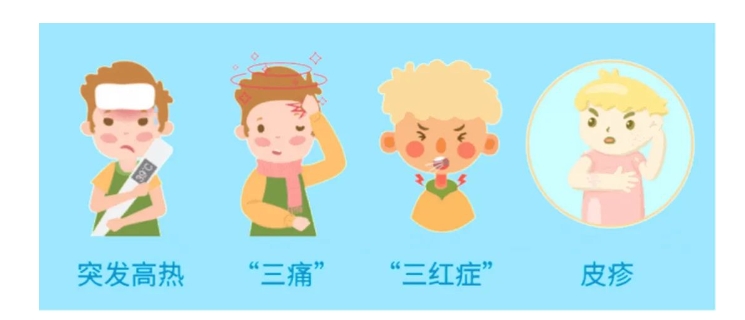 登革熱的典型癥狀可以歸納為:高熱、三紅、三痛、皮疹”。