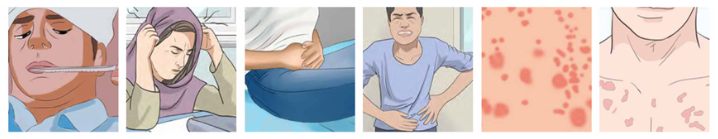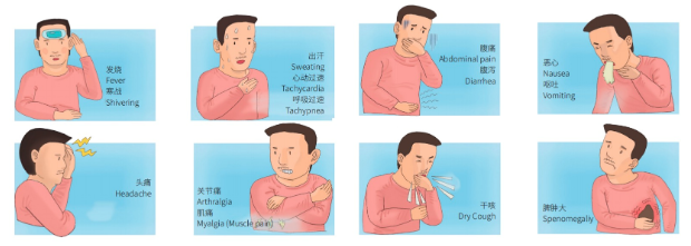 媒介伊蚊叮咬患者或隱性感染者后,通過叮咬傳播給其他人。潛伏期為1~14天,多為4~7天。臨床癥狀表現(xiàn)為發(fā)熱(可持續(xù)2~7天),劇烈頭痛、肌痛、關(guān)節(jié)痛、眼眶痛、食欲減退、惡心、嘔吐和皮疹,嚴重時可發(fā)展為重癥登革熱,出現(xiàn)出血、休克等危險情況。