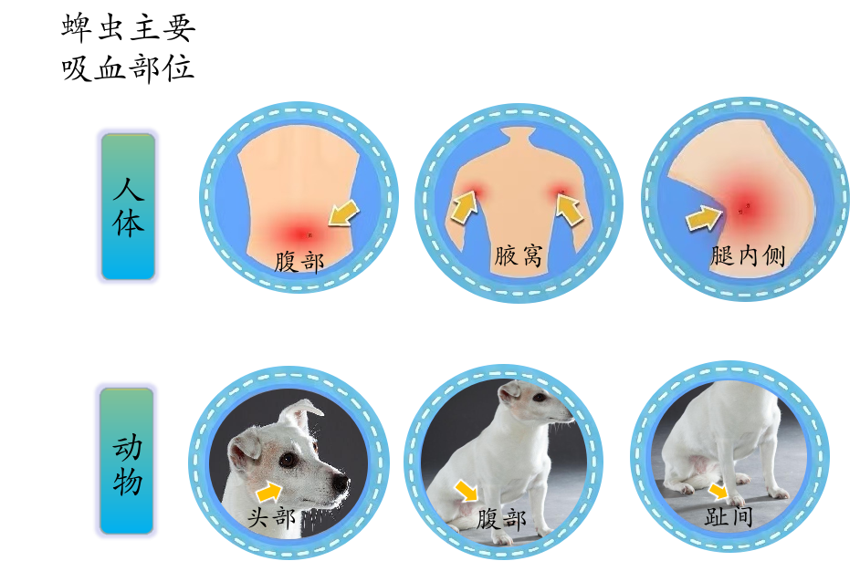 蜱蟲的一生需要經(jīng)歷卵、幼蟲、若蟲和成蟲四個階段,幼蟲吸血后發(fā)育為若蟲,若蟲吸血后發(fā)育為成蟲,而成蟲也要吸血后才可產(chǎn)卵,所以吸血是蜱蟲一生孜孜不倦的追求(除極少數(shù)種外)。蜱蟲還是一種非常聰明的生物,它會對宿主的寄生部位進(jìn)行選擇,一般會在皮膚較薄、不易被觸碰到的部位寄生,如人和動物的頸部、耳后、腋窩、腰腹部、腿內(nèi)側(cè)以及動物趾間等。