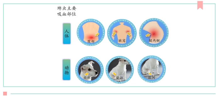 蜱蟲的一生需要經(jīng)歷卵、幼蟲、若蟲和成蟲四個階段,幼蟲吸血后發(fā)育為若蟲,若蟲吸血后發(fā)育為成蟲,而成蟲也要吸血后才可產(chǎn)卵,所以吸血是蜱蟲一生孜孜不倦的追求(除極少數(shù)種外)。蜱蟲還是一種非常聰明的生物,它會對宿主的寄生部位進行選擇,一般會在皮膚較薄、不易被觸碰到的部位寄生,如人和動物的頸部、耳后、腋窩、腰腹部、腿內(nèi)側(cè)以及動物趾間等。